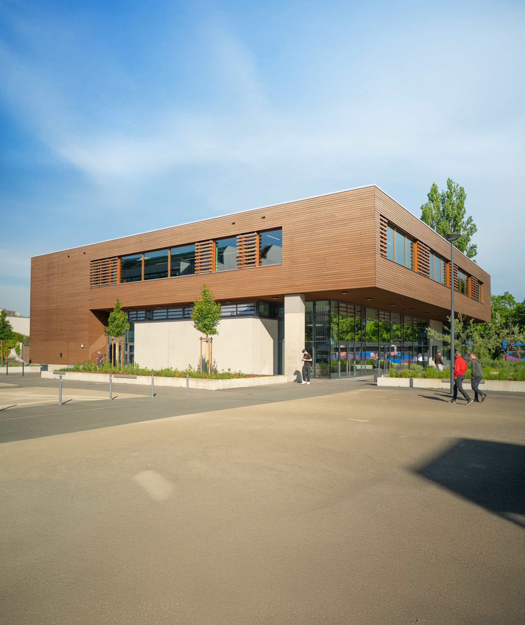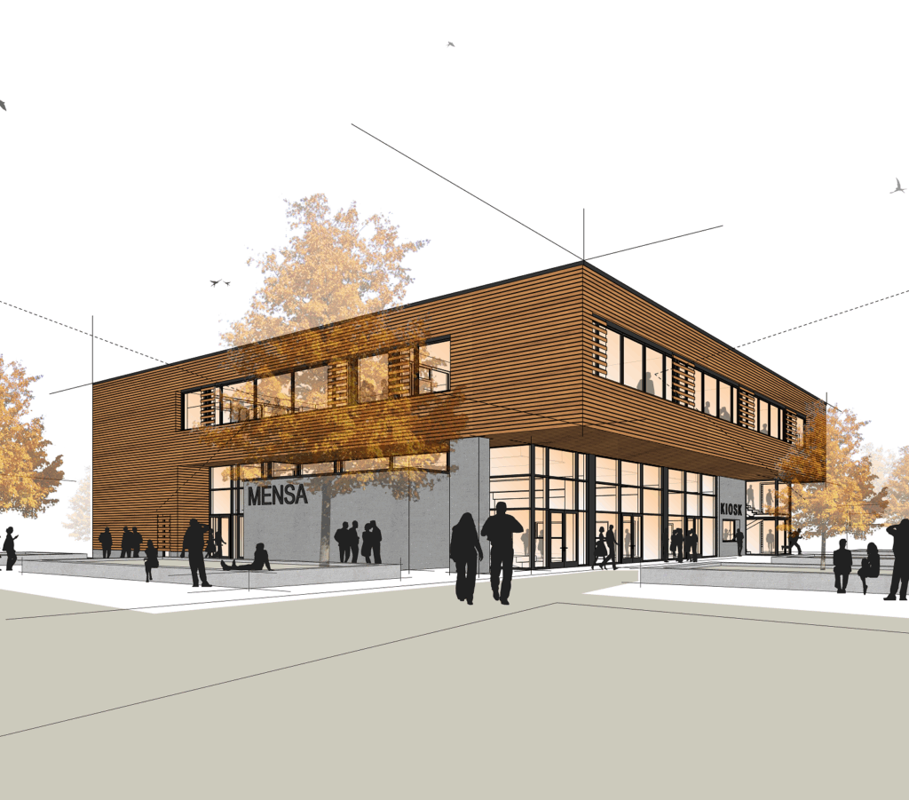 Im VgV-Verfahren 2020 erhielt unser Büro den Zuschlag für die Erweiterung inkl. multifunktionaler Mensa. Das nachhaltige Projekt wurde in Anlehnung an den Passivhausstandard umgesetzt.