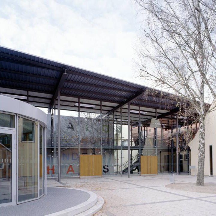 Das Grundkonzept für die Erweiterung der Hauptschule orientiert sich an dem Ensemble der Gehöftanlage.
